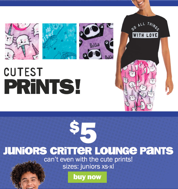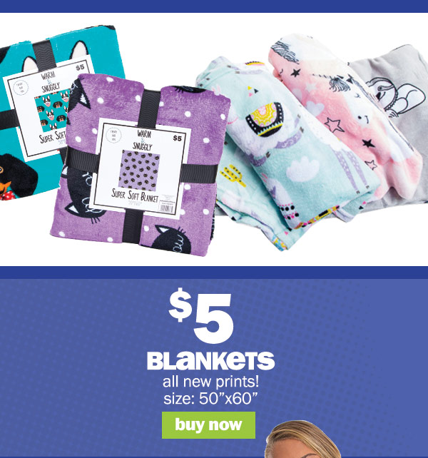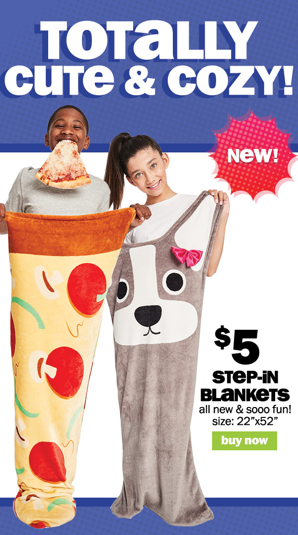 shop all new $5 step-in blankets, pillows, critter tops, lounge pants & lots more!!