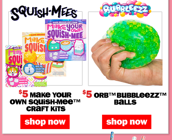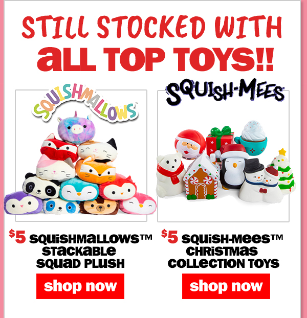 shop $5 squishmallows stackable plush, $5 make your own squish-mees, $5 orb bubbleezz balls, $5 Christmas squish toys & more!! can't see this email? click here | |||||||||||||||