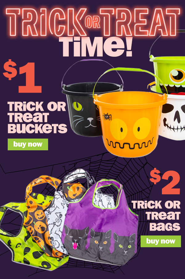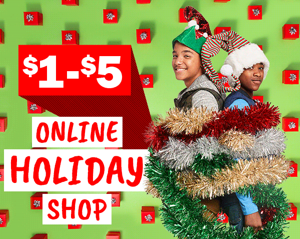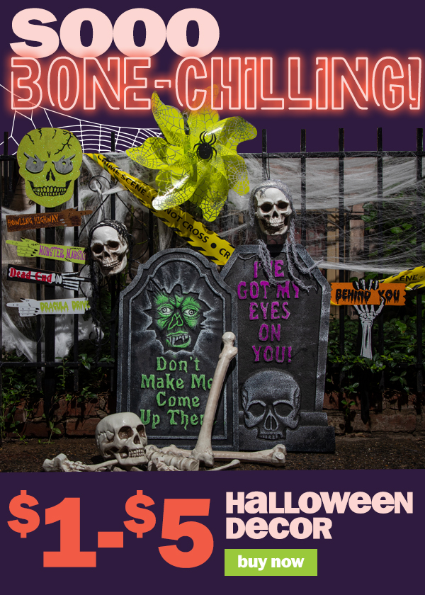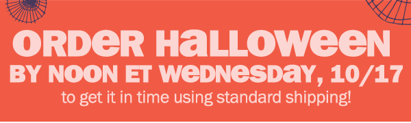order $1-$5 halloween by noon ET 10/17 to get it in time! plus, our $1-$5 online holiday shop is now open!! can't see this email? click here |