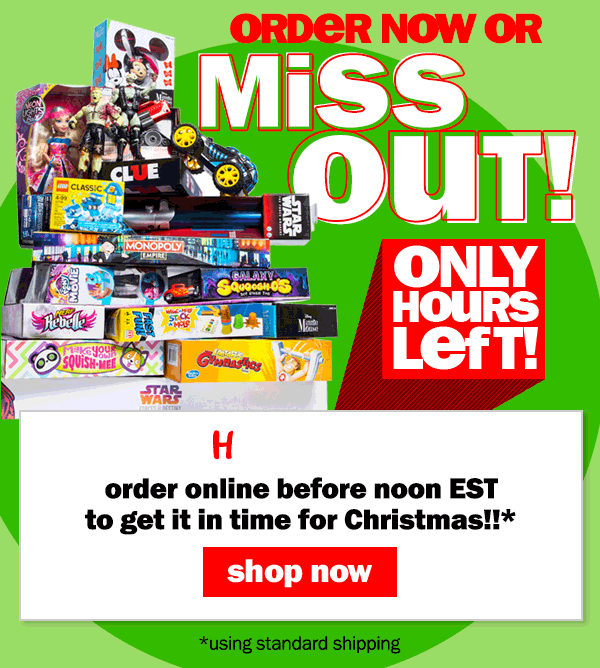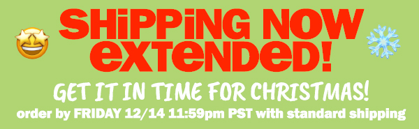 order by friday 12/14 @ 11:59pm PST using standard shipping to get it in time for Christmas!! can't see this email? click here | |||||||||||||||