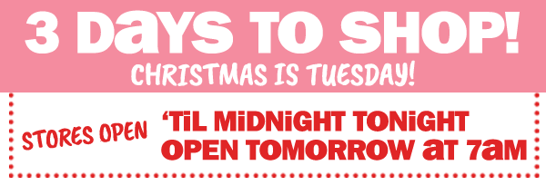 3 days to shop & we're open 'til midnight! shop 5 for $5 sheet masks, $5 bluetooth earbuds & so much more!! can't see this email? click here | |||||||||||||||