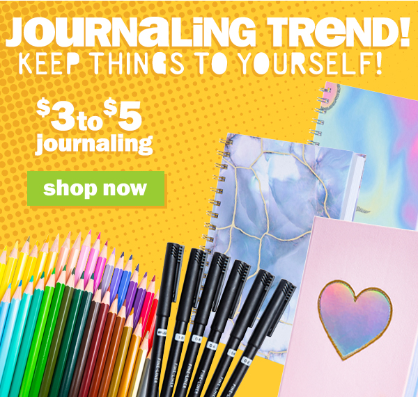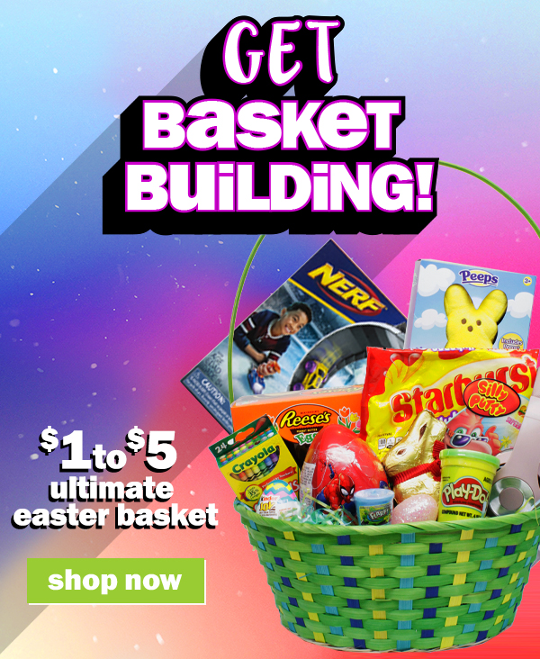 shop our $1-$5 ultimate easter basket plus, $2-$5 bubbles or chalk & $3-$5 journaling trend!