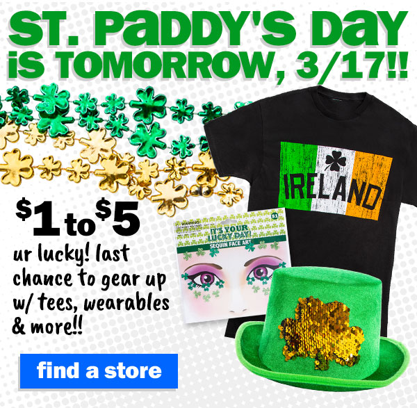 shop $1-$5 st. paddy's day gear plus, $5 craft kits for wknd fun!! can't see this email? click here | |||||||||||||||