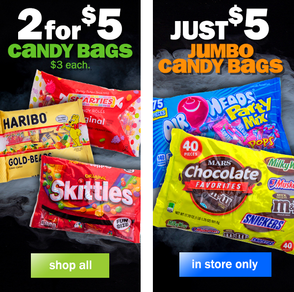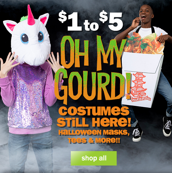shop lots of $1-$5 halloween masks, tees, costumes, candy & more!!