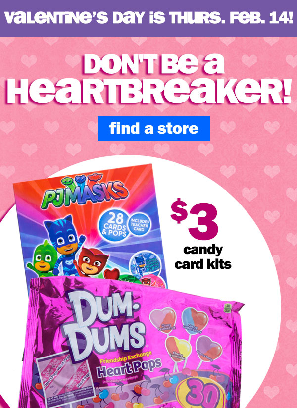 shop $1-$5 valentine's day gifts like candy card kits, chocolate heart boxes & more!! can't see this email? click here | |||||||||||||||
