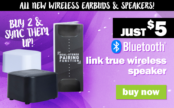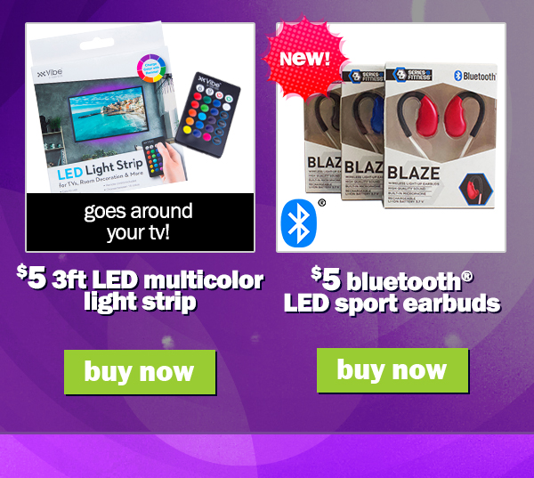 back in stock! shop $5 bluetooth focus earbuds, $5 link speakers, $5 LED tech & more!! can't see this email? click here | |||||||||||||||