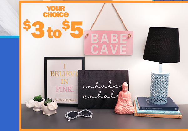shop all new $3-$5 room stuff like pillows, décor, blankets & so much more!! can't see this email? click here | |||||||||||||||