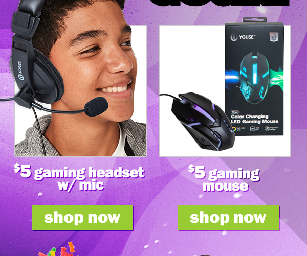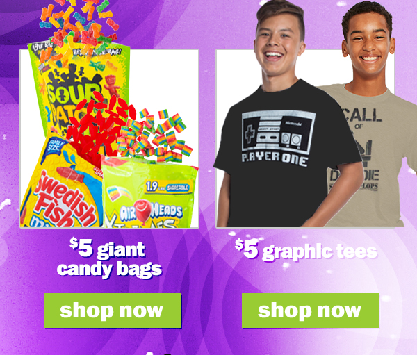 shop $5 gaming gear, giant candy bags, tees & more!! can't see this email? click here | |||||||||||||||