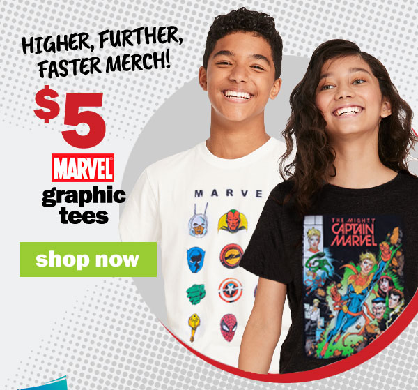 shop all marvel gear like $5 captain marvel tee, $5 mighty mugs figures & more!! can't see this email? click here | |||||||||||||||