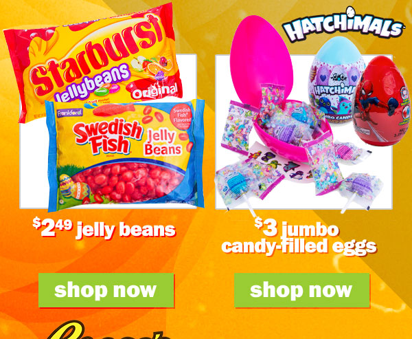 shop $2.49 jelly beans, $5 giant reese's egg, $5 grand ferrero rocher & more!! can't see this email? click here | |||||||||||||||