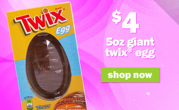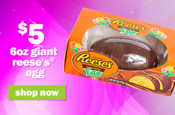 shop $5 giant reese's egg, $4 giant twix egg, $5 mega candy tubes & lots more!! can't see this email? click here | |||||||||||||||