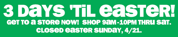 3 days left 'til easter!! shop 9am-10pm now thru saturday!! can't see this email? click here | |||||||||||||||