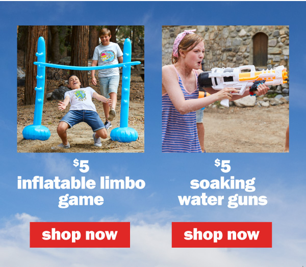 shop $5 inflatable limbo, $5 soaking water guns & more! plus, find last min father's day gift ideas!! can't see this email? click here | |||||||||||||||