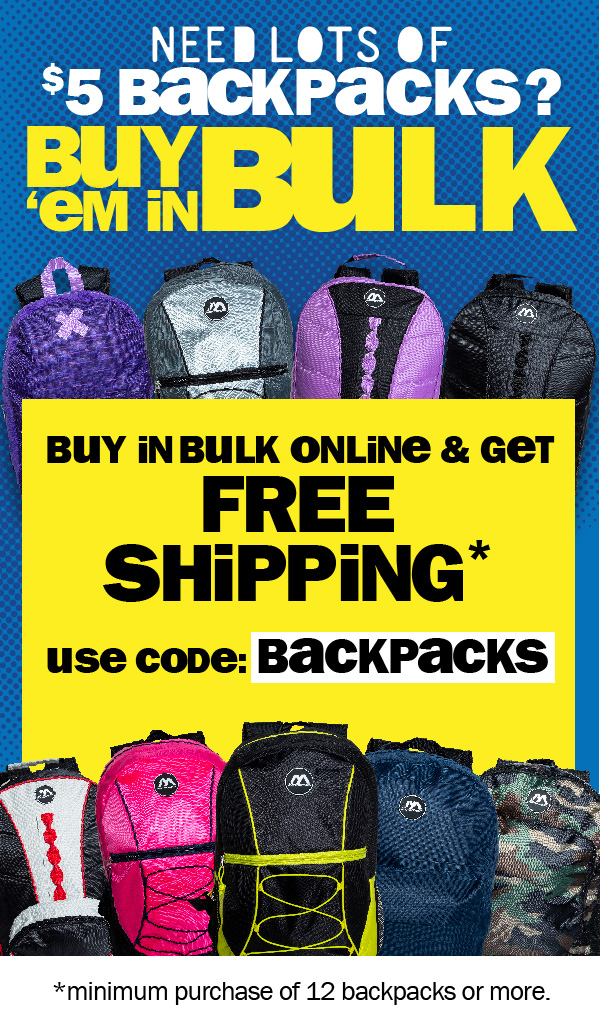 need lots of $5 backpacks? buy in bulk online & get free shipping!! can't see this email? click here | |||||||||||||||