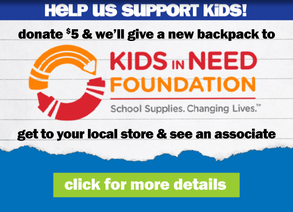 valid NOW thru sun. 8/18/19! + donate a $5 backpack to a child in need! can't see this email? click here | |||||||||||||||