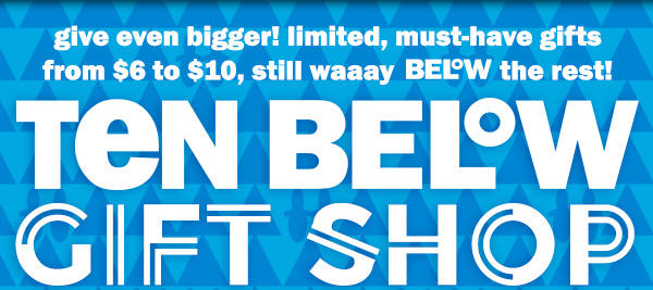 $5 flat rate shipping! plus, shop ten below gift shop, cyber week & top toy gifts!! | ||||||||||||