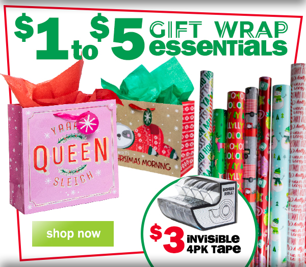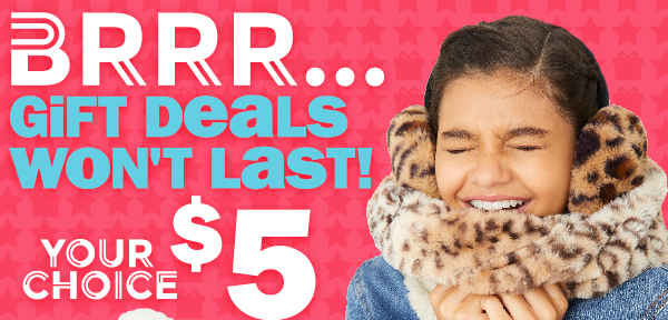 stores open 'til 11pm tonight! shop $5 cold weather accessories, $5 beauty gifts, $1-$5 gift wrap, & more!! | ||||||||||||